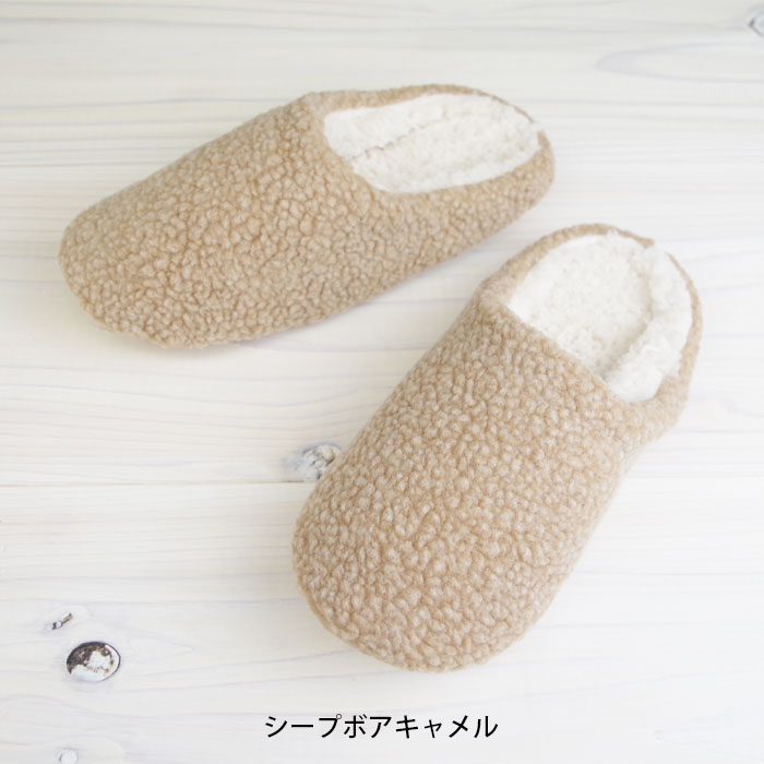 メール便 スリッパ 冬用 レディース SUAVE TEXTILE スリッパ キャメル/グレー/ネイビー シープボア 秋 冬 ニット 暖かい おしゃれ かわいい 防寒 ナチュラル シンプル もこもこ ふわふわ