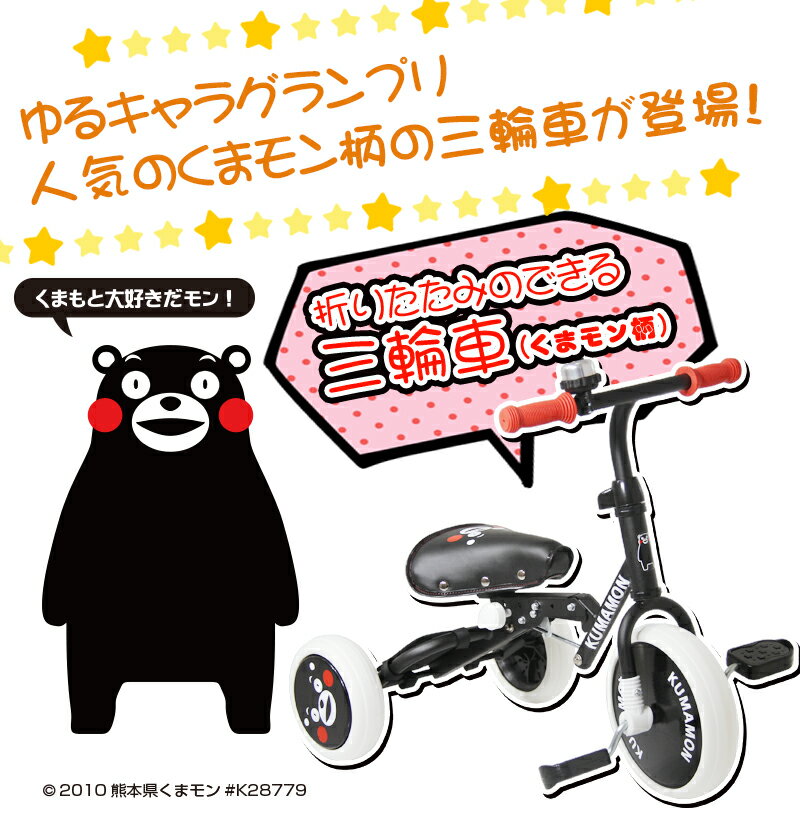 人気のゆるキャラ【くまモン】柄の折りたたみ三輪車 ★