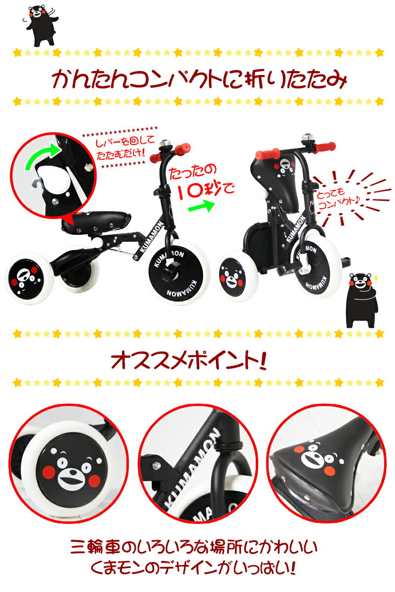 セール! 折りたたみ三輪車 くまモン柄 トライク ゆるキャラ自転車 折り畳み式三輪車 (キャラクター自転車/幼児用/さんりんしゃ)