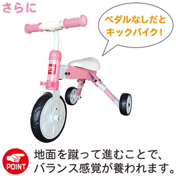 ■バランスバイクにもなります ペダルを外すと地面を蹴って進むバランスバイク(キックバイク)としてもご使用いただけます。