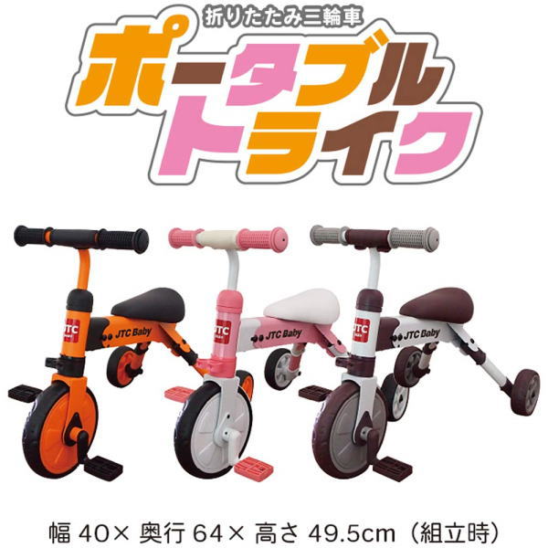 【送料無料(北海道沖縄離島は配送不可)】折りたたみ三輪車 ポータブル トライク オレンジ/ピンク/ブラウン JTC 乗用玩具