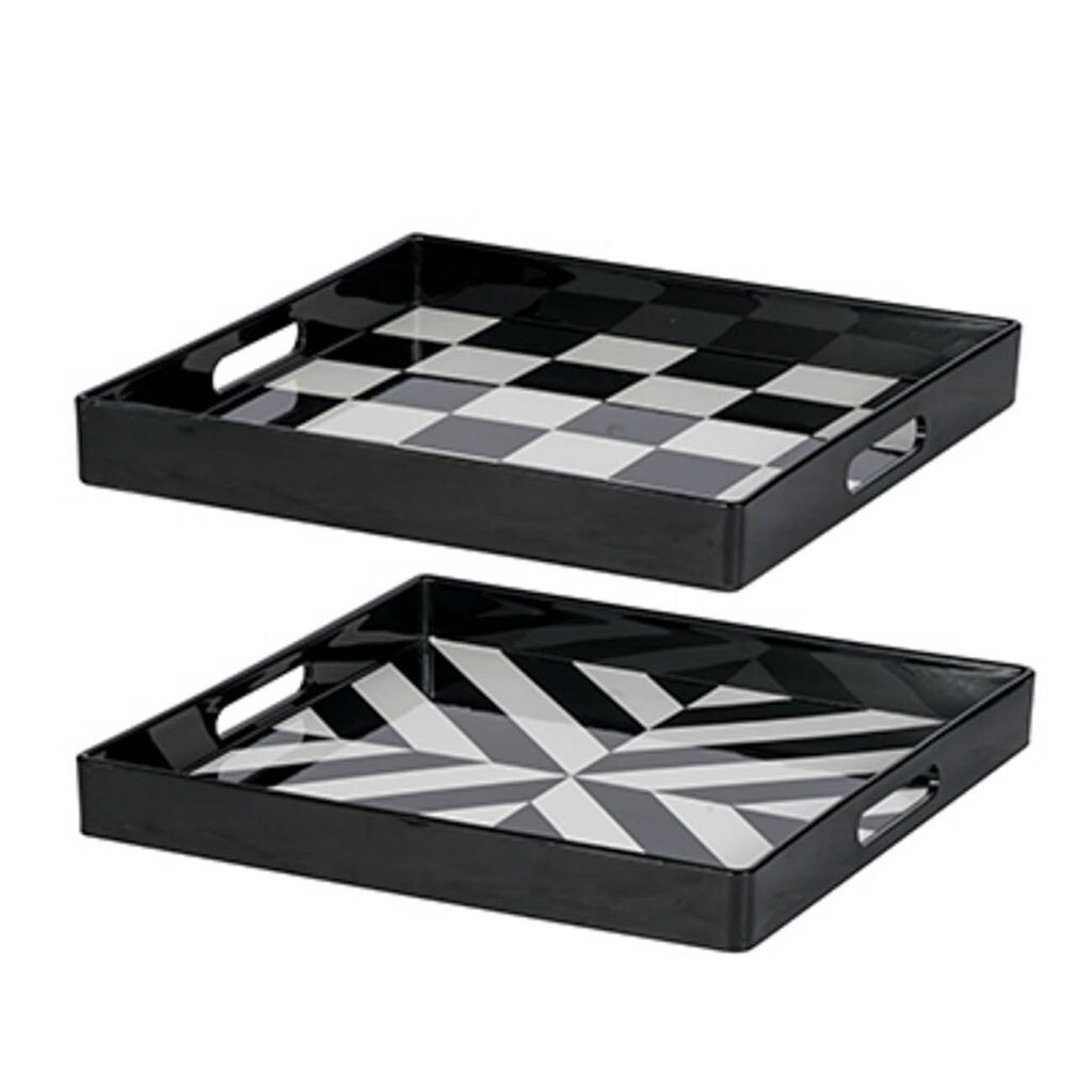 トレイ 大小2枚セット トレー お盆 チェック柄 白黒 チェッカー 小物置き ディスプレイ インテリア雑貨 おしゃれ カジュアル メンズ レディース 飾り物 小物入れ