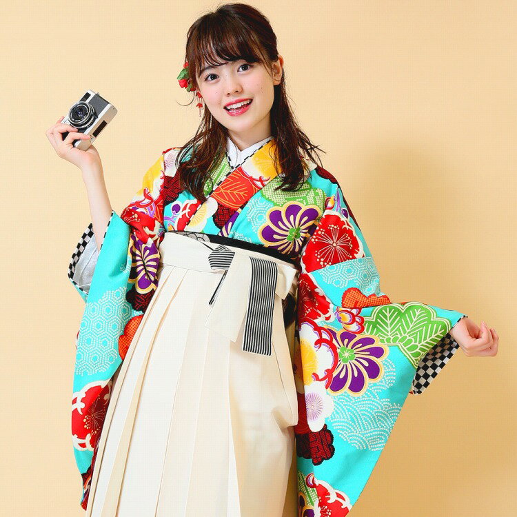 【レンタル】【往復送料無料】卒業式 袴 レンタル 女性 袴セット 女 卒業式袴セット2尺袖着物&袴 フルセットレンタル 安い レトロ 大正浪漫 モダン【Capri 袴17点セット JAPANSTYLE×中村里砂 ターコイズの梅レトロ】新品足袋プレゼント Capri カプリ