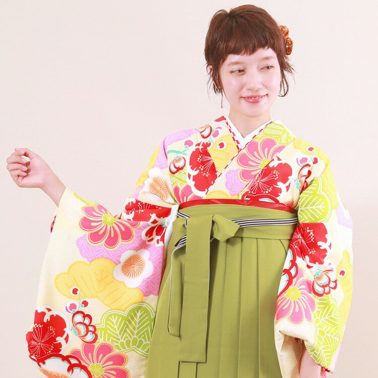 【レンタル】往復送料無料 japanstyle×中村里砂 卒業式 袴 レンタル 女性 袴セット 女 卒業式袴セット2尺袖着物&袴 フルセットレンタル 安い レトロ 大正浪漫 モダン貸衣装 袴 着物 卒業式 小学生 中学生 大学生 クリーム レッド モダン 椿 グリーン 赤 緑 生成り