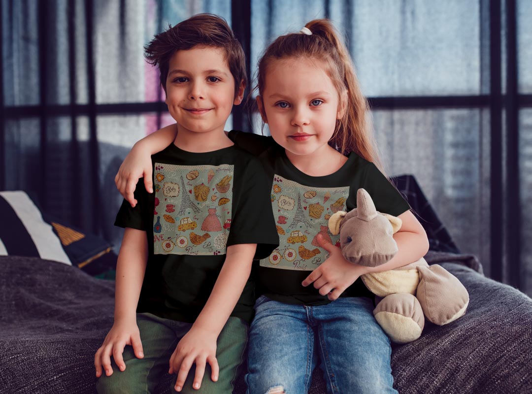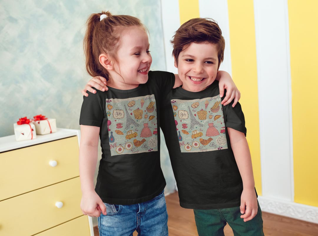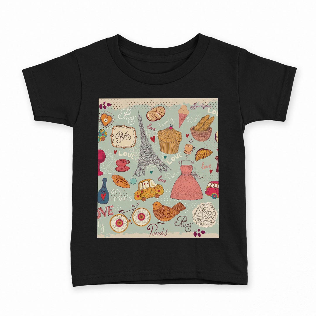 tシャツ キッズ 半袖 黒地 ブラック デザイン 90 100 110 120 130 140 150 Tシャツ ティーシャツ T shirt 005959 イラスト 食べ物 車