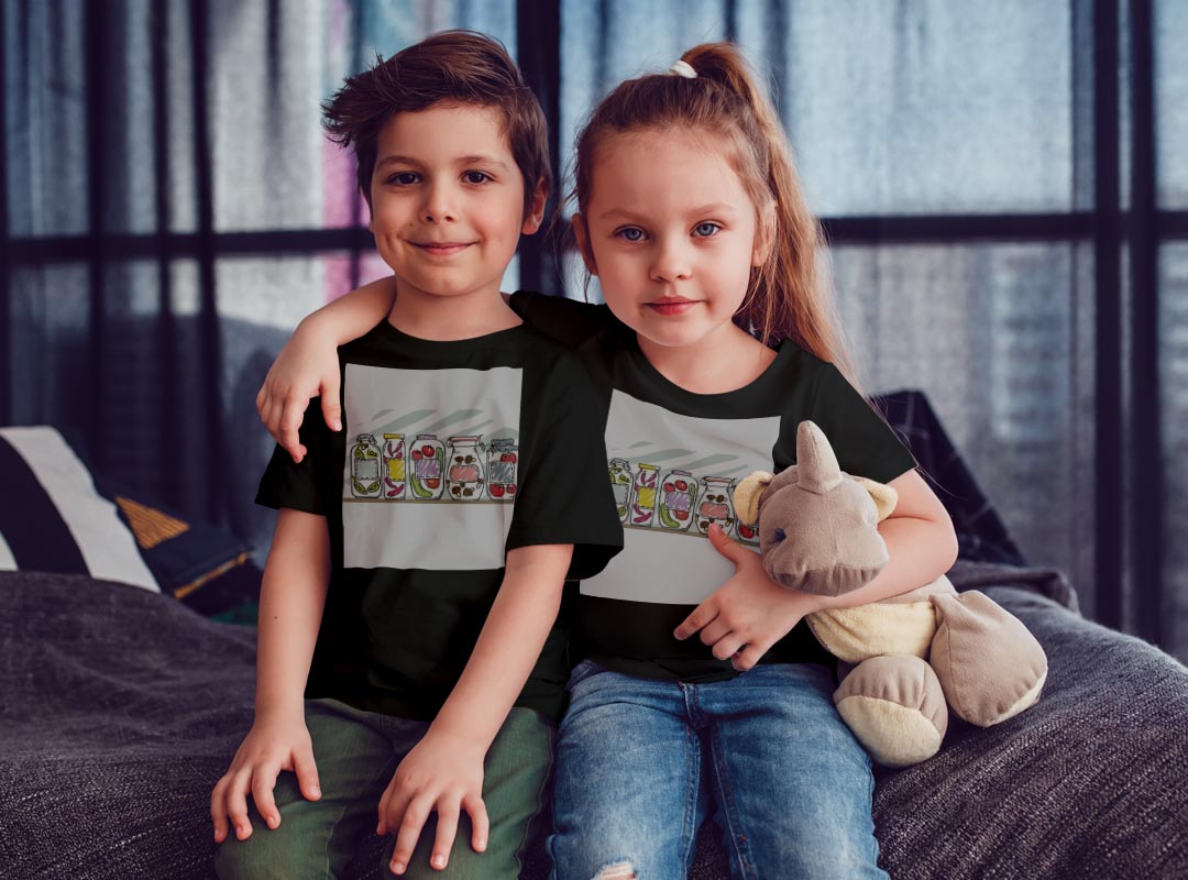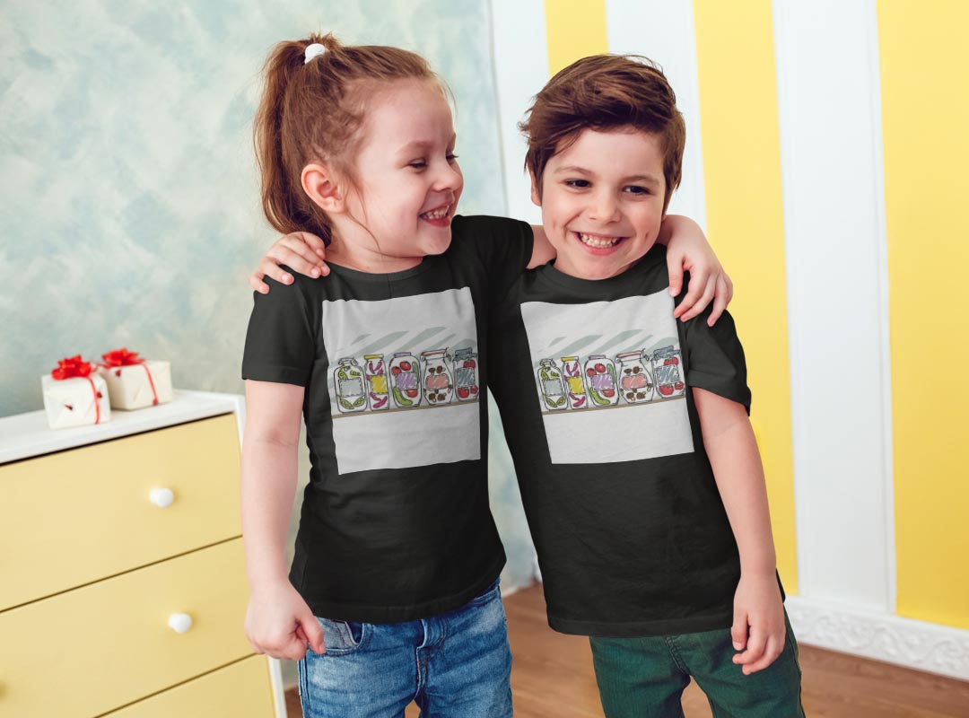 tシャツ キッズ 半袖 黒地 ブラック デザイン 90 100 110 120 130 140 150 Tシャツ ティーシャツ T shirt 009788 食べ物 イラスト カラフル