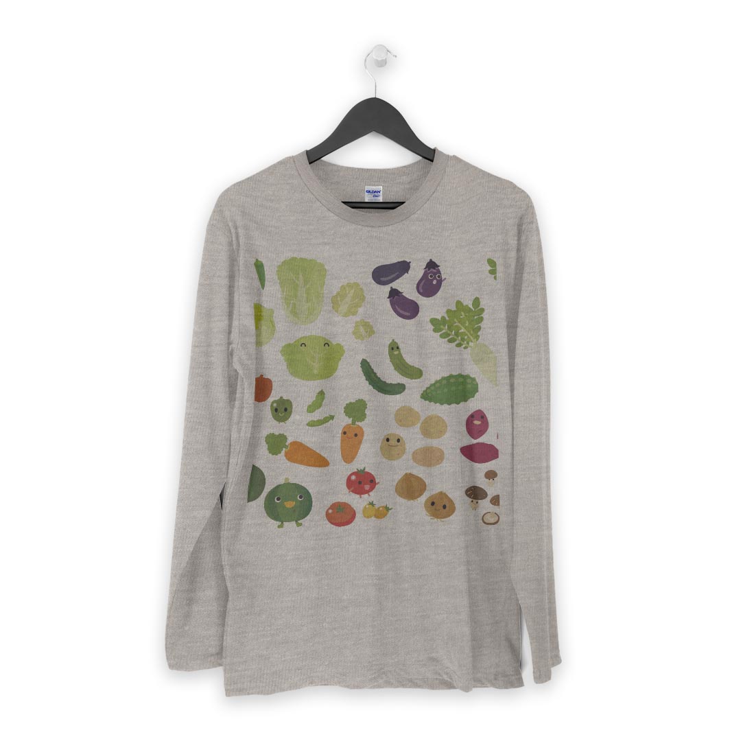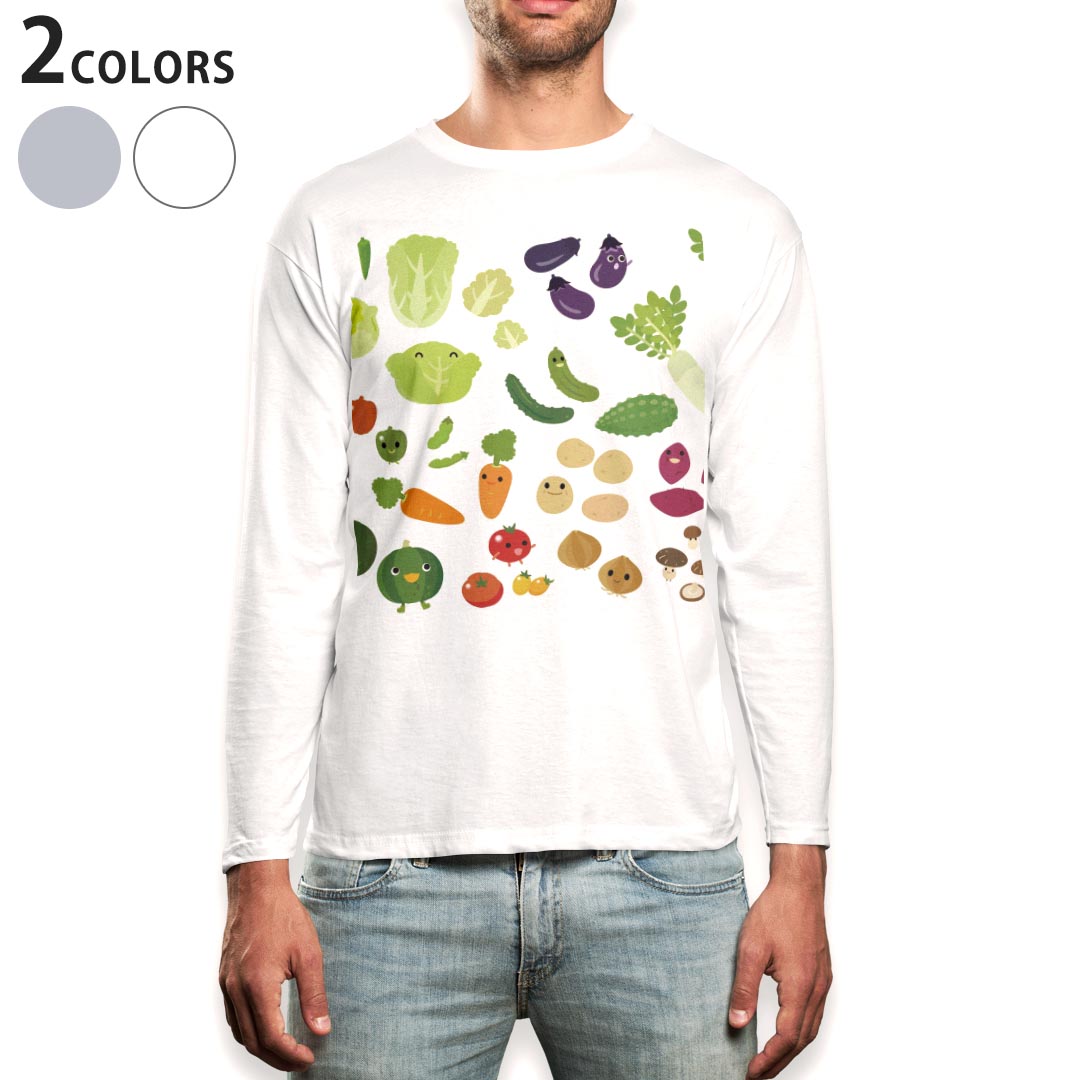 ロング tシャツ メンズ 長袖 ホワイト グレー デザイン XS S M L XL 2XL Tシャツ ティーシャツ T shirt long sleeve 009272 キャラクター 食べ物