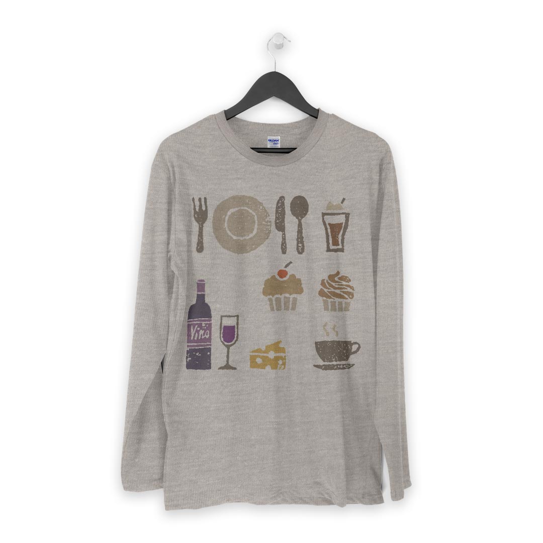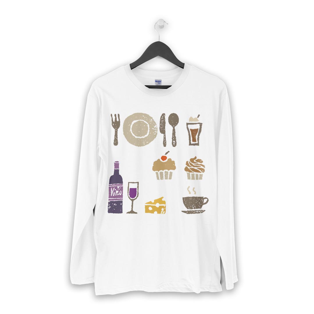 ロング tシャツ メンズ 長袖 ホワイト グレー デザイン XS S M L XL 2XL Tシャツ ティーシャツ T shirt long sleeve 013336 ケーキ ワイン 食べ物