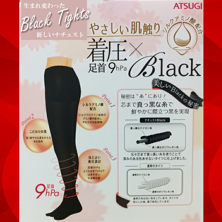 素材 黒原着ナイロン・ポリウレタン使用 サイズ M−L (ヒップ:85-98cm 身長:150-165cm) L−LL (ヒップ:90-103cm 身長:155-170cm) 特徴 シルクアミノ酸配合でやわらかな肌感触 足首着圧×美しく鮮やかに際立つBlackタイツ ●2足組 ●足首着圧9hPa ●80デニール(マットな質感) ●シルクアミノ酸配合 ●抗菌防臭加工 ●静電防止加工 ●ヌードトウ ●吸汗加工 ●バックマーク付き ●日本製(Made in JAPAN) 配送 ネコポス対応商品です (2セットまで同梱可能) 注意 ※ネコポス(メール便)は日時指定・代引きが出来ません。