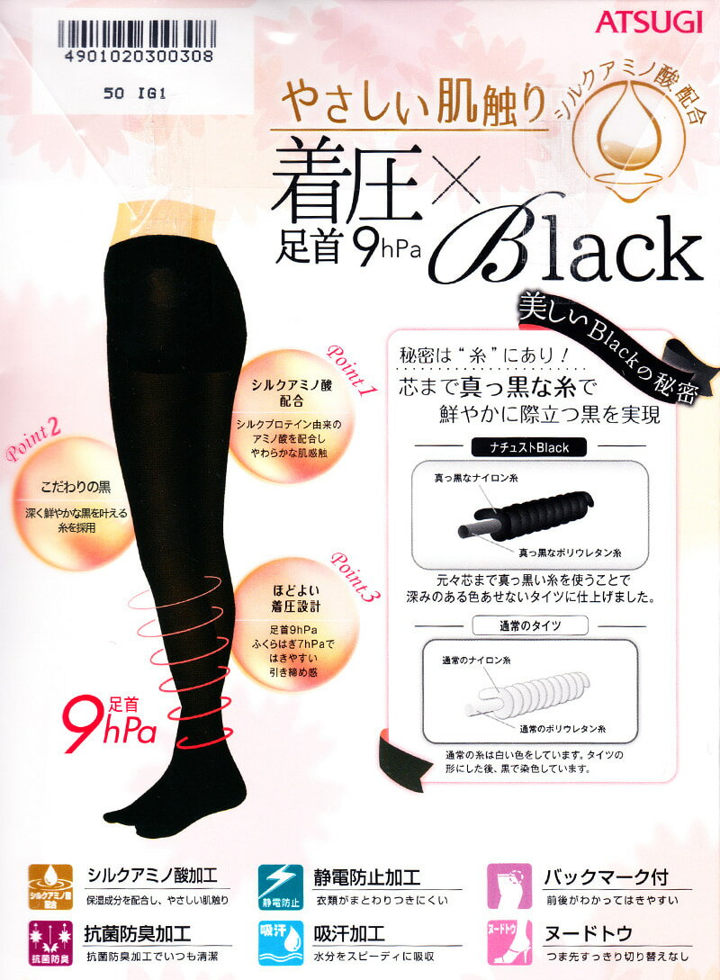 こちらは冴えたブラックが脚を美しく演出する、80デニールの着圧タイツになります。